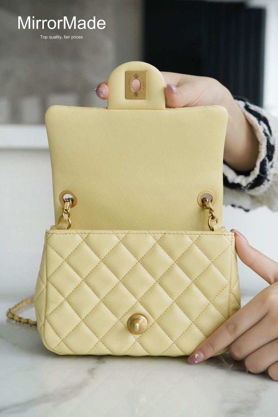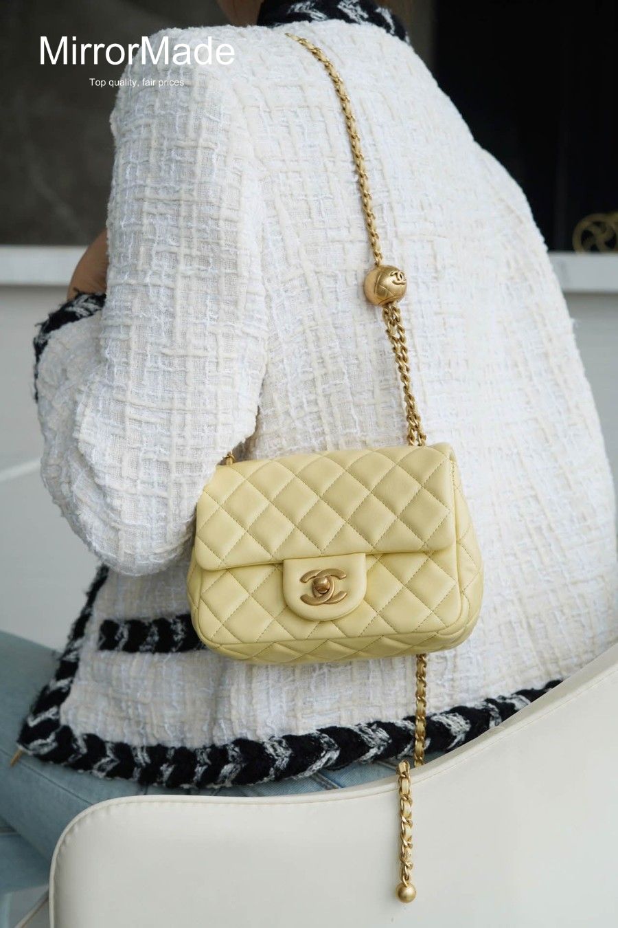 • 샤넬 23K 골드볼 쁘띠삭 미니 플랩백 램스킨 AS1786