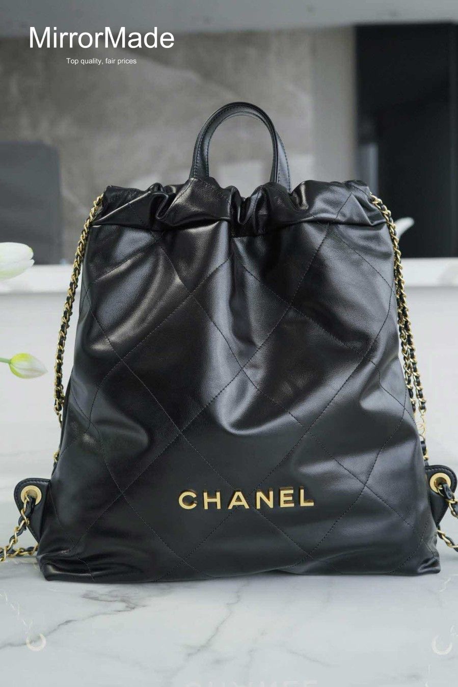 • 샤넬 22P 22 탑핸들 라지 백팩 카프스킨 AS3313