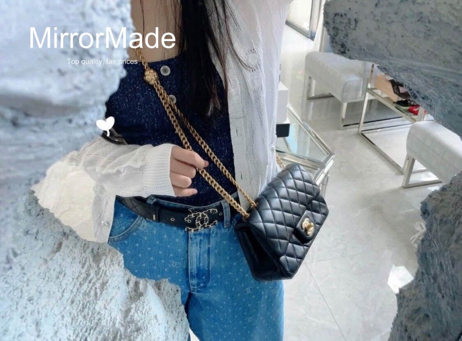 • 샤넬 23s 까멜리아 골드볼 클래식 뉴미니 플랩백 램스킨 AS4041